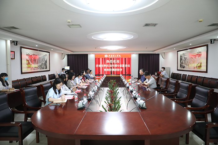 6月30日,济南市科技局(市外专局)外国专家服务处处长杨涛来我校交流指导工作。副校长单成娟,计算机与信息工程学院、人事处、国际交流与合作处相关负责人及学校外籍专家代表等参加会议。
