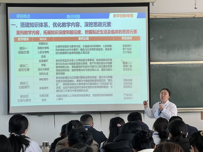 会议以“以评促建、以评促强”为导向,特别邀请山东省课程思政示范课程负责人张慧、王莹两位主任作专题分享。张慧结合《生理学》省级课程思政示范课程建设经验,从“思政元素系统化挖掘”“专业教学与价值观引领有机融合”等方面展开讲解,提出“情境浸润式教学”创新模式;王莹则以《医学生物化学》课程为例,分享了“三三三”课程思政育人模式,为一线教师提供了可借鉴、可推广的样板。