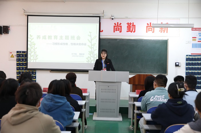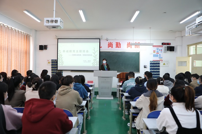 辅导员向同学们详细介绍了本学期学院养成教育的现实意义、实施细则,养成教育活动清单、考核方式等内容,使学生进一步理解、践行学校养成教育工程,促进自身全面发展。