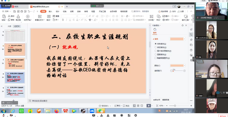 更新时间:2022-05-08 17:07 为了帮助毕业生合理的规划、利用剩余的大学时光,进行正确的职业定位,商学院于2022年5月5日下午15:00在腾讯会议举行了有关毕业生求职技巧就业服务的会议。参会人员有2018级贸易经济、政治学与行政学,会议由韩世琦主持。