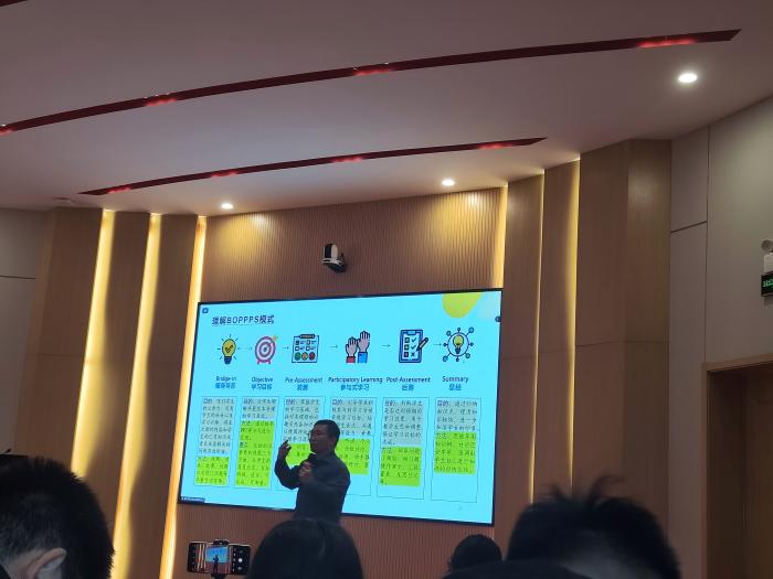随后,他结合自身多年的研究和实践经验,详细讲解了OBE教学设计要点、学习目标的制定和描述、针对学习目标的教学实施、针对学习目标的教学评价。他指出,课程设计要遵循“逆向设计”原则,即从预期的学习成果出发,设计教学内容、教学方法和评价体系;课程实施要注重学生的参与和体验,采用多样化的教学手段激发学生的学习兴趣;课程评价要注重过程性评价和结果性评价相结合,全面评估学生的学习成果。此次讲座内容丰富、案例生动,引发了在场教师的强烈共鸣。