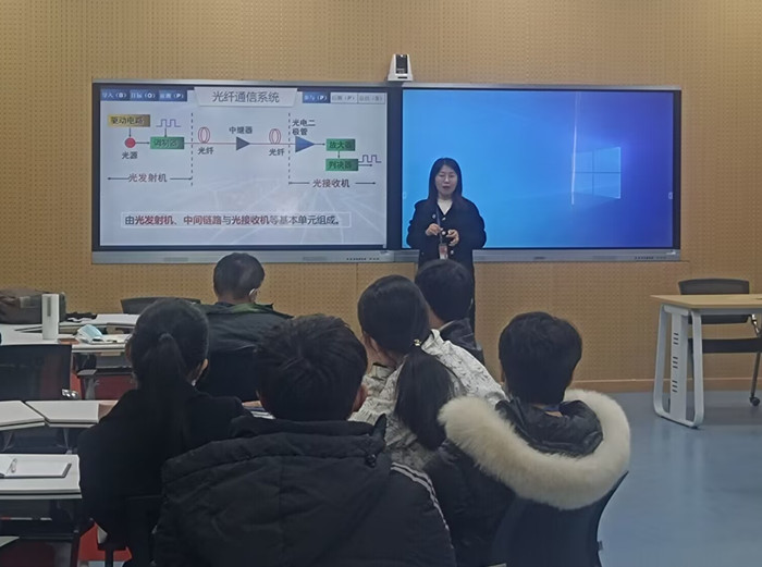 王迎勋老师以《光纤通信》课程为例,分享了教学改革实践实施经验。王迎勋老师在课程中从导入(B)、目标(O)、前侧(P)、参与(P)、后侧(P)、总结(S)几个环节展开课程内容的讲解。设置动脑总结环节,让同学们分别以“我学会了”、“我的体会”、“我想我将”根据自己对课程内容的理解进行发表自己的收获、体会和想法及收到的启发。在课程的最后发布课后拓展资料、包括图片、视频资料等,引导同学们了解更多的课本以外的知识,增加对本课程内容的理解的同时,加深对课程知识点的现实应用的理解。