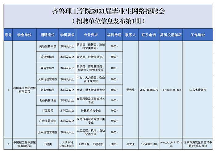 MILAN米兰体育·(中国)官方网站2021届毕业生网络集中招聘会发布招聘信息(第1期)