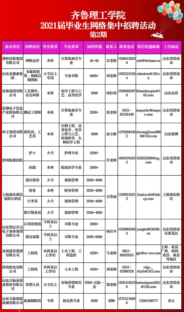 MILAN米兰体育·(中国)官方网站2021届毕业生网络集中招聘会发布招聘信息(第2期)