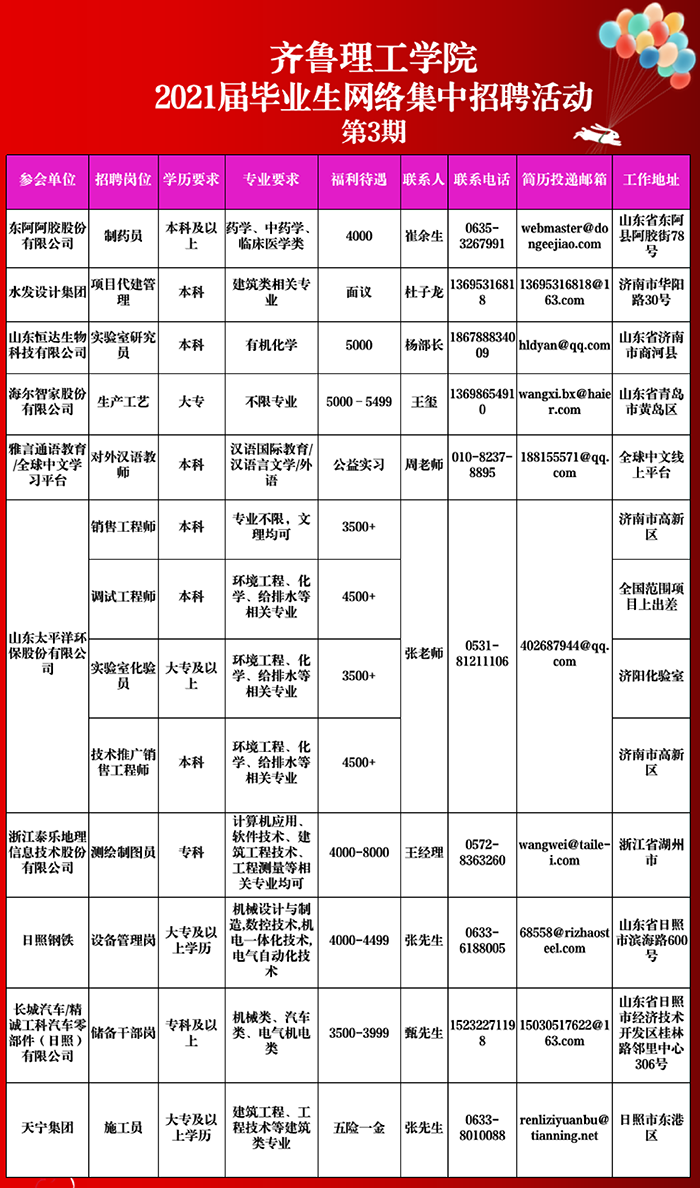 MILAN米兰体育·(中国)官方网站2021届毕业生网络集中招聘会发布招聘信息(第3期)