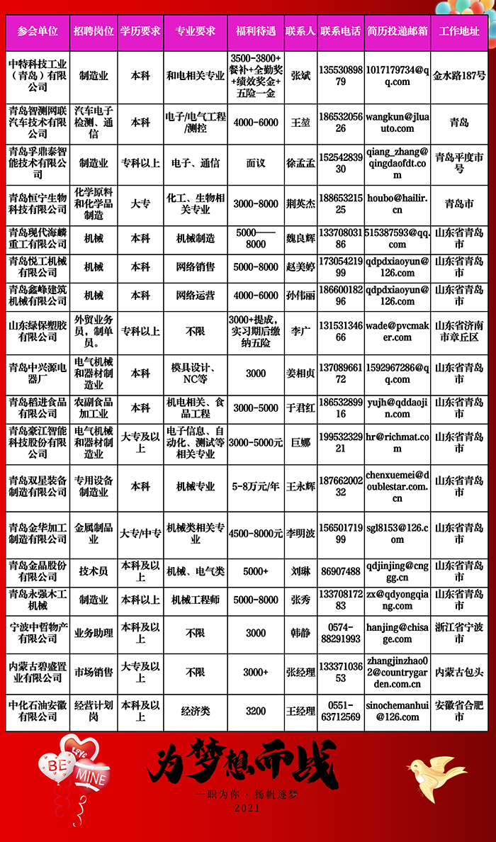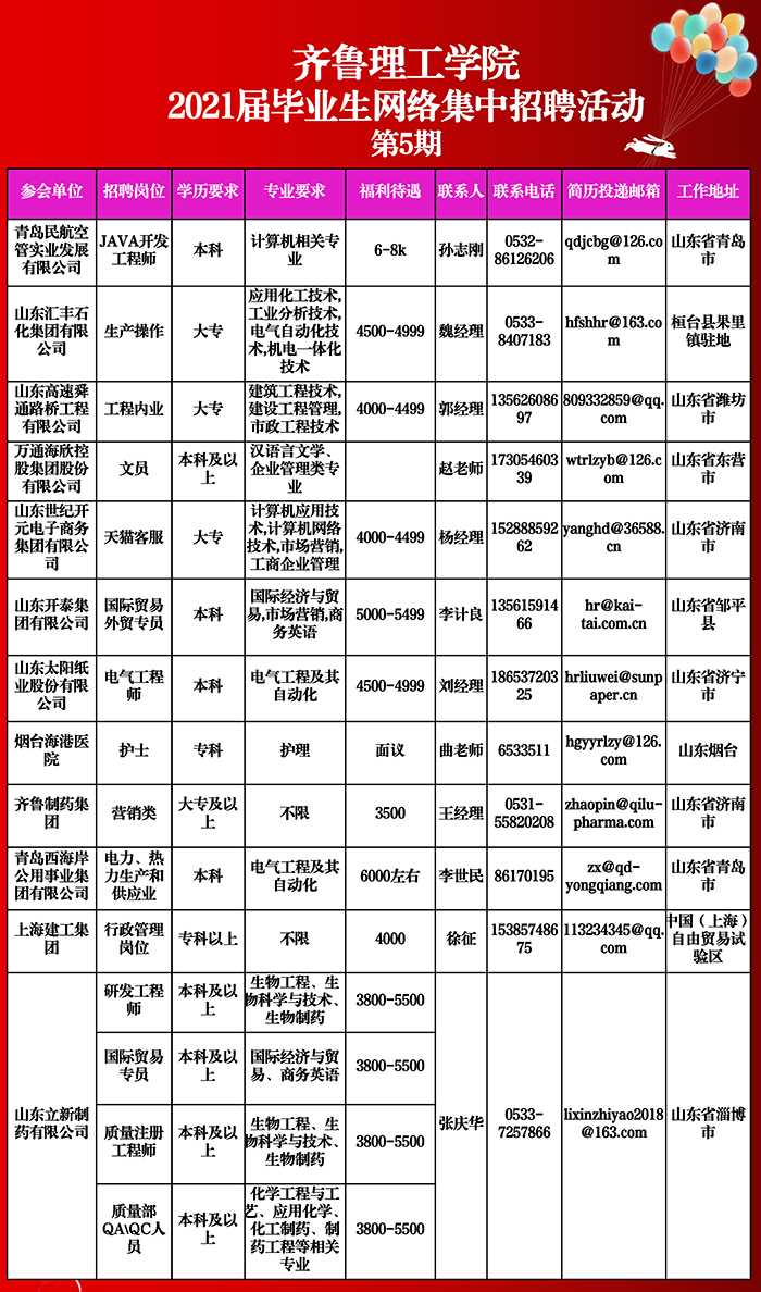 MILAN米兰体育·(中国)官方网站2021届毕业生网络集中招聘会发布招聘信息(第5期)