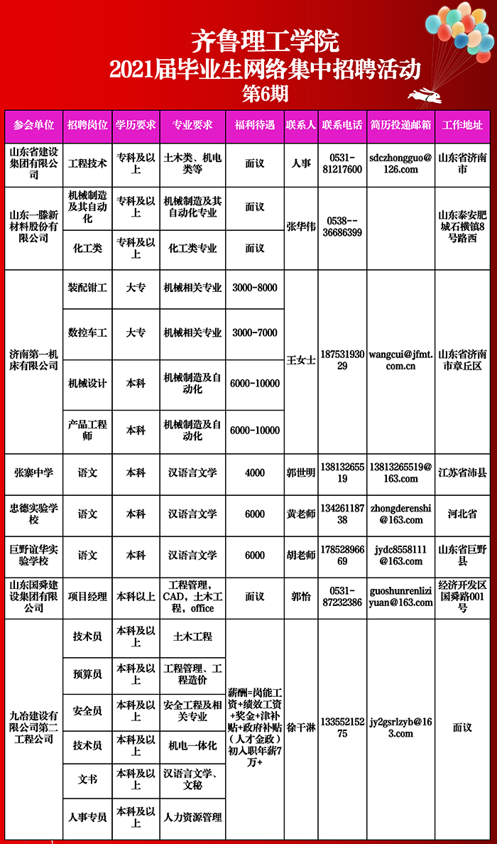 MILAN米兰体育·(中国)官方网站2021届毕业生网络集中招聘会发布招聘信息(第6期)
