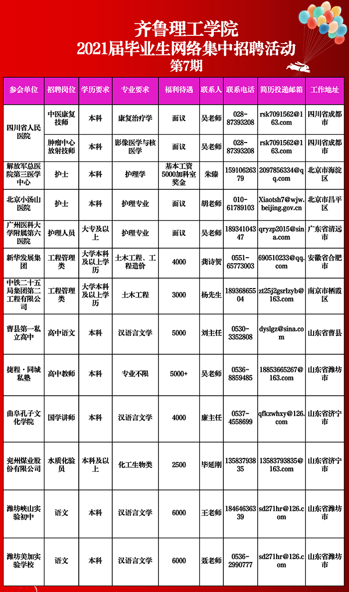 MILAN米兰体育·(中国)官方网站2021届毕业生网络集中招聘会发布招聘信息(第7期)