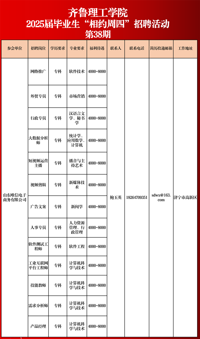 2025届毕业生“相约周四”招聘活动(第38期)