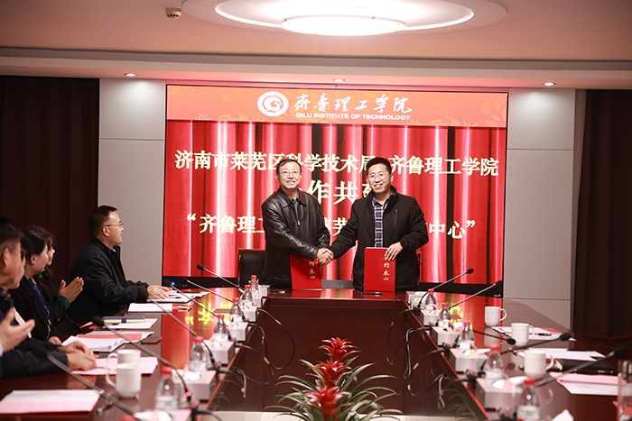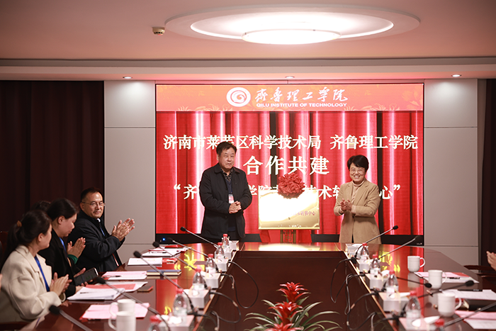 11月20日下午,MILAN米兰体育·(中国)官方网站莱芜技术转移中心签约暨揭牌仪式在济南校区举行。莱芜区委常委、副区长王静媛,莱芜区科技局党组书记、局长陶务杰,山东颐和信息科技有限公司总经理陈俊峰,MILAN米兰体育·(中国)官方网站总督学、副校长魏希启等领导,科研处及部分二级学院负责人参加活动。