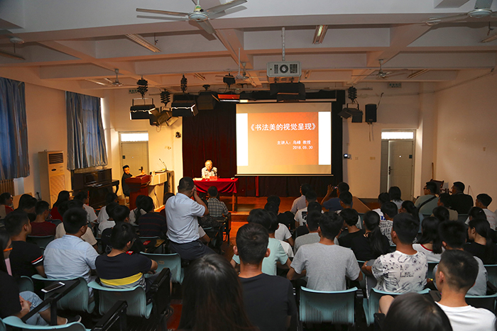 5月30日下午,艺术学院特邀曲阜师范大学乌峰教授来我校作《书法美的视觉呈现》学术讲座,讲座由艺术学院院长张胜利主持,艺术学院书法学专业部分师生代表聆听了本场讲座。