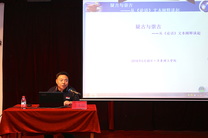5月30日下午,文学院在第一学术报告厅举办《疑古与崇古——从《论语》文本阐释谈起》专题讲座。活动邀请山东省“十三五”高校人文社会科学研究平台曲阜优秀传统文化传承发展研究中心学术带头人、济宁学院中文系副主任王永超博士主讲。讲座由文学院院长秦国华主持,文学院、艺术学院师生代表聆听了本场讲座。