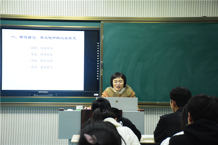 11月17日,我校齐鲁文化精神系列讲座迎来了山东理工大学马克思主义学院的王雁教授,她讲座的题目是《齐文化的尚智精神》,全体2018级新生听取讲座。