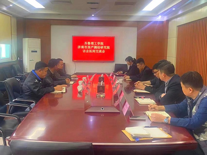 交流中,院长徐强对我院访企拓岗的行动表示认同,随后详细介绍了济南市房产测绘研究院的发展概况以及单位目前对毕业生的需求现状。土木工程学院就业院长殷志友对济南市房产测绘研究院院长徐强热情接待表示感谢,同时介绍了学校的基本情况,并希望双方就带动全员深度参与做好毕业生就业工作,全面深化校企合作、供需对接,着眼长远构建毕业生市场化社会化的就业工作机制,全力促进毕业生更加充分更高质量就业开展交流与合作。