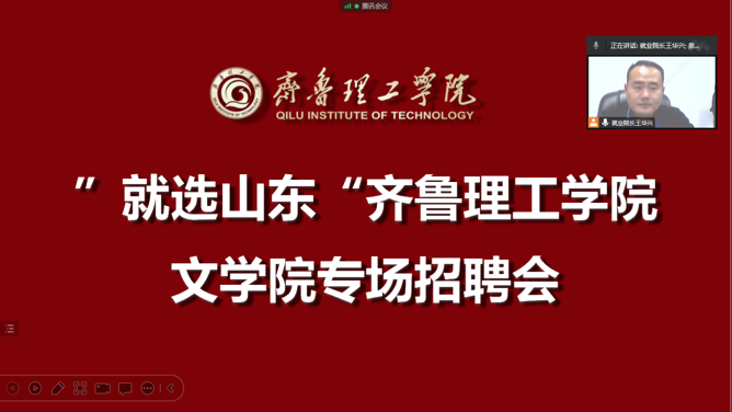 更新时间:2022-11-11 11:11 11月10日,文学院分别邀请烟台茂宸信息科技有限公司、曲阜尼山文化旅游投资发展有限公司、山东思玛特教育科技有限公司、邹平远方艺术培训学校有限公司、青岛丽晶大酒店有限公司、山东智博威教育科技集团有限公司面向我院毕业生开展线上专场招聘会,招聘会由文学院就业副院长王华兴主持。