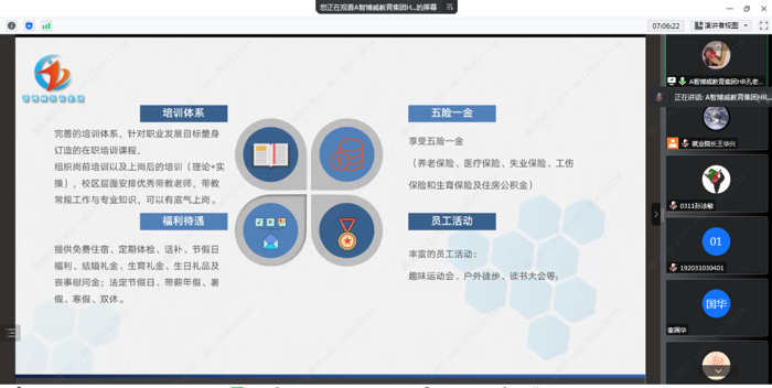 招聘会上,与会单位通过线上宣讲的方式向同学们介绍了公司的基本概况、发展历程、业务布局、人才需求、岗位要求等,让同学们全面了解用人单位、岗位信息及入职后个人职业发展方向。与会毕业生结合自己的就业意向和专业能力,针对自己感兴趣的问题与企业进行了线上交流沟通,企业给予了耐心细致的解答。王华兴副院长强调,毕业生要理性看待当前的就业形势,树立正确的就业观、择业观,端正心态,把握机遇,先就业再择业,以积极的心态应对求职。