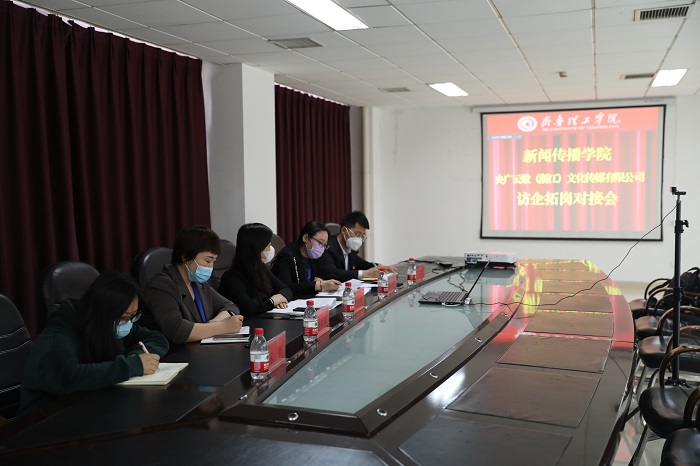 会上,单成娟校长和王小霞院长分别介绍了学校和学院的基本情况并进一步明确访企拓岗促就业的目的,央广教育新媒体主播培训项目负责人任爽利用ppt和宣传片详细介绍了央广云数声音数字产业平台的综合情况,展示了产业现有实力以及对产教融合方面的美好愿景。