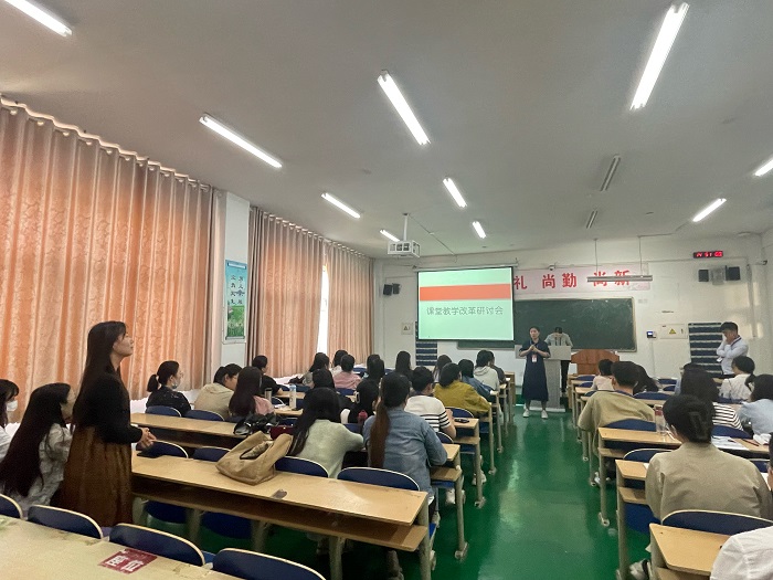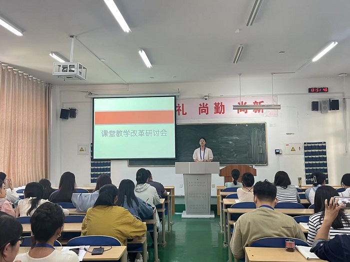 更新时间:2023-09-15 09:11 为进一步探讨课堂教学改革的实施效果和完善方案,提升专业教师课堂教学水平,我院于9月14日在教学楼A104进行了课堂教学改革经验分享交流会。会议由院长助理袁晓文主持,辛雨、郭建芸、徐晨、吕婧玮、张萌、李卓玲六位教师作为实施教改的优秀教师代表依次发言分享经验。