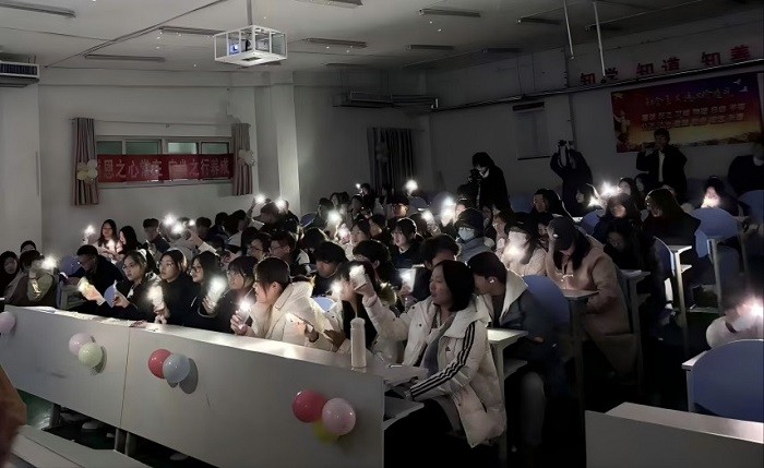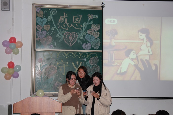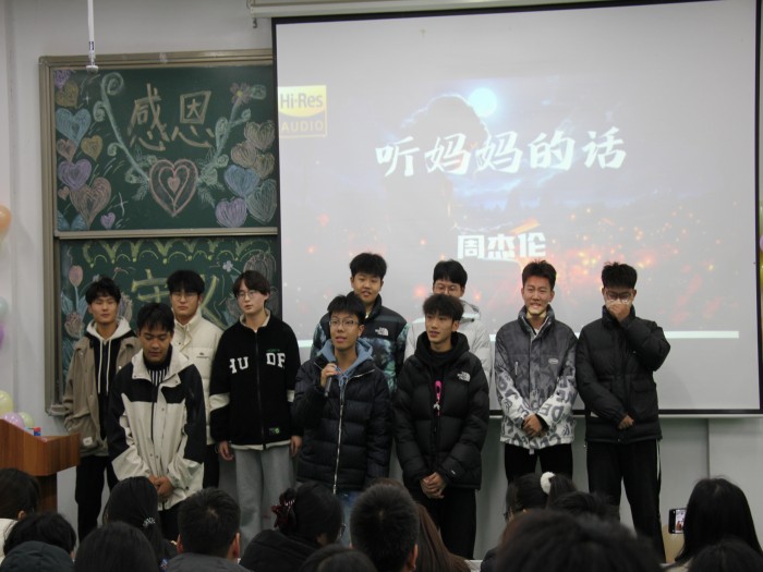 互动结束后,新媒体技术女生通过朗诵、歌曲分别表达了对自己和老师的感恩,珍视成长路上的每一步足迹并向在教育一线默默耕耘的教师们致以最崇高的敬意。最后,歌曲《爸爸妈妈》如同一颗情感的重磅炸弹,将活动氛围推向了巅峰。同学们齐声高歌,用最质朴、最深情的声音传递出对父母的绵绵爱意与感恩之情,为整个活动画上了一个圆满而动人的句号。
