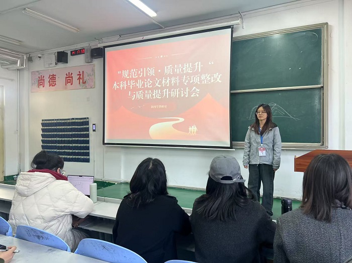 更新时间:2025-04-08 08:58 近日,新闻学教研室在A108教室成功举办了以“规范引领·质量提升”为主题的本科毕业论文材料专项整改与质量提升研讨会。此次会议旨在通过系统梳理现存问题,制定规范化整改方案,并探讨建立长期质量监控机制的有效路径,从而进一步提升毕业论文的整体水平。