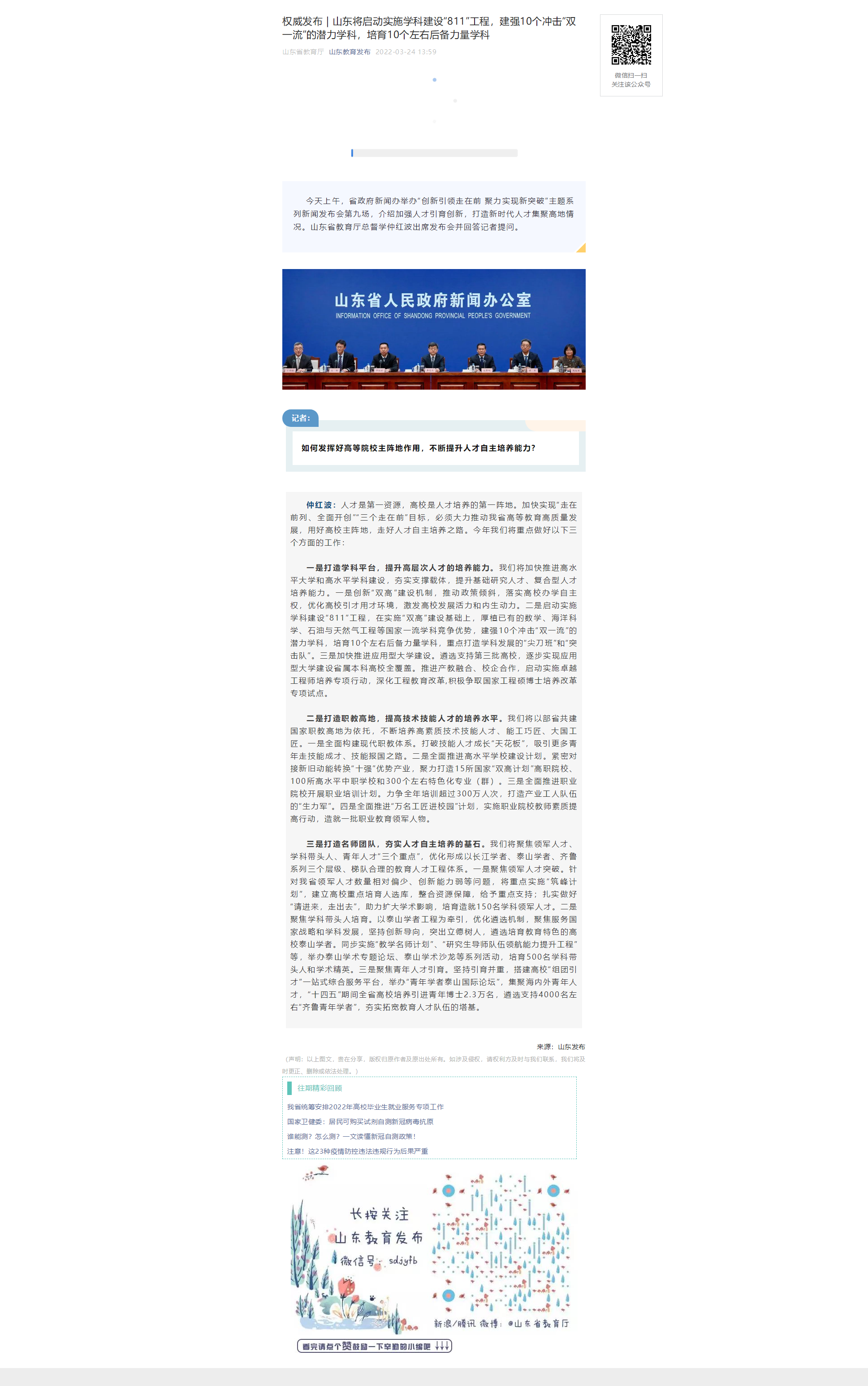 山东将启动实施学科建设“811”工程,建强10个冲击“双一流”的潜力学科,培育10个左右后备力量学科