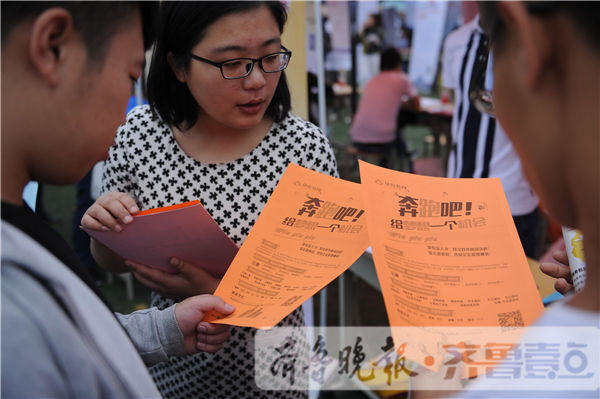 28日早上9点多,体育场入口处就排起了长队,周边13所院校的学生陆续赶来。对他们来说,这是一次找工作的绝佳机会,本次联合招聘会吸引了魏桥创业、LG集团、海信电器、鲁南制药等400多家省内外用人单位参加,提供就业岗位2万余个。