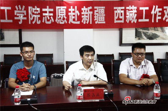最后,党委副书记苏占兵作重要讲话,代表学校向赴新疆、西藏工作的学生表示衷心的祝贺,并对他们提出了几点希望:一是要适应转变,调整心态,尽快融入到新的生活和工作环境中;二是要吃苦耐劳,树立努力向上、完善自我、奋发图强的革新精神,树立实事求是、知行合一、艰苦奋斗的务实精神,努力培养自己直面挑战的能力、适应社会的能力、参与竞争的能力和创新创业的能力;三是要虚心学习,向人民群众学习,向基层干部学习,向同行学习,为自己的成长发展提供不竭动力;四是要甘于奉献,继承艰苦奋斗的优良传统,弘扬谦虚谨慎、不骄不躁的作风,立足本职,埋头苦干,在西部、在基层,到困难多、挑战性强的地方,到祖国、人民最需要的地方,经受锻炼,在艰苦中创业,在奉献中成长,让青春在奉献中闪光,让生命绽放出最明亮最炽烈的火花。