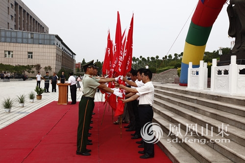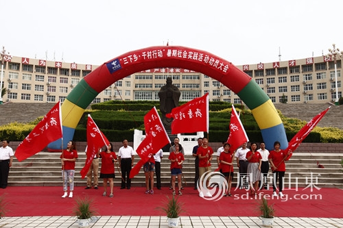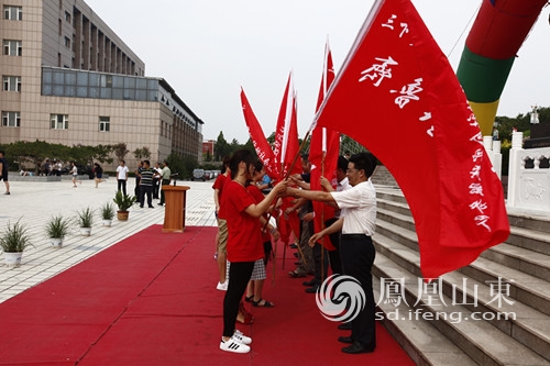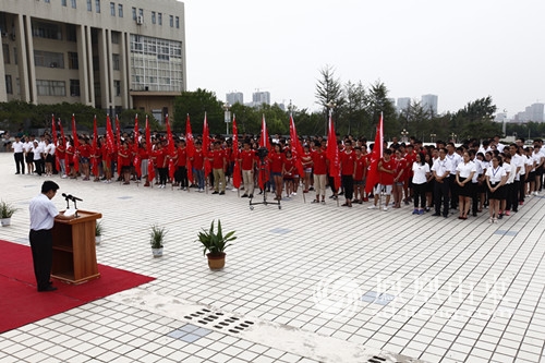 启动仪式上,学校领导首先向参加2016年大学生暑期“三下乡”社会实践的队伍进行授旗。