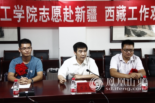 最后,党委副书记苏占兵作重要讲话,代表学校向赴新疆、西藏工作的学生表示衷心的祝贺,并对他们提出了几点希望:一是要适应转变,调整心态,尽快融入到新的生活和工作环境中;二是要吃苦耐劳,树立努力向上、完善自我、奋发图强的革新精神,树立实事求是、知行合一、艰苦奋斗的务实精神,努力培养自己直面挑战的能力、适应社会的能力、参与竞争的能力和创新创业的能力;三是要虚心学习,向人民群众学习,向基层干部学习,向同行学习,为自己的成长发展提供不竭动力;四是要甘于奉献,继承艰苦奋斗的优良传统,弘扬谦虚谨慎、不骄不躁的作风,立足本职,埋头苦干,在西部、在基层,到困难多、挑战性强的地方,到祖国、人民最需要的地方,经受锻炼,在艰苦中创业,在奉献中成长,让青春在奉献中闪光,让生命绽放出最明亮最炽烈的火花。