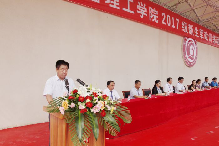 副校长魏希启在动员讲话中代表学校向承训的全体官兵表示热烈的欢迎和衷心的感谢!向为军政训练辛勤工作的老师们和积极参训的同学们表示亲切的慰问和良好的祝愿!他同时对参加军政训练的2017级新生提出四点要求和希望:一是希望你们通过军政训练,培育崇尚贤德、追求美善的优秀品格;二是希望你们通过军政训练,培育志向高远、矢志报国的优秀品格;三是希望你们通过军政训练,培养吃苦耐劳、坚韧不拔的优秀品格;四是希望你们通过军政训练,培养严守规矩、崇尚文明的优秀品格。今年,我校将迎接教育部本科合格评估,这是我校建设发展中的大事,当前已到了攻关冲刺、决战决胜阶段。希望每一名同学都积极融入齐鲁理工这个大家庭,在军政训练和今后学习生活中,团结一心,众志成城,以自身实际行动推动学校建设发展,为顺利完成迎评贡献力量。最后,魏希启副校长以习总书记在北京大学的一段讲话与同学们共勉:“当代青年建功立业的舞台空前广阔,梦想成真的前景空前光明,希望大家努力在实现中国梦的伟大实践中,努力创造自己的精彩人生”。