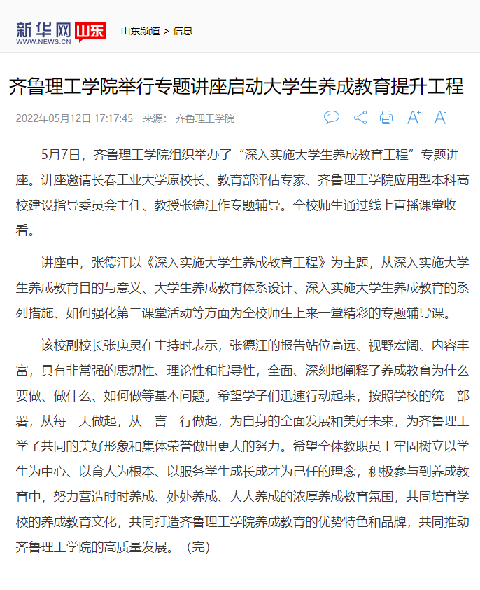 新华网:MILAN米兰体育·(中国)官方网站举行专题讲座启动大学生养成教育提升工程