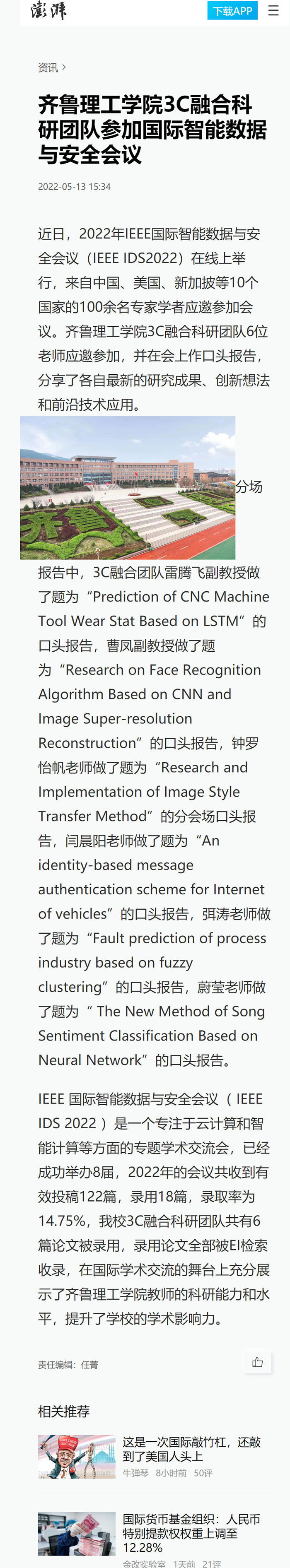 澎湃新闻:MILAN米兰体育·(中国)官方网站3C融合科研团队参加国际智能数据与安全会议