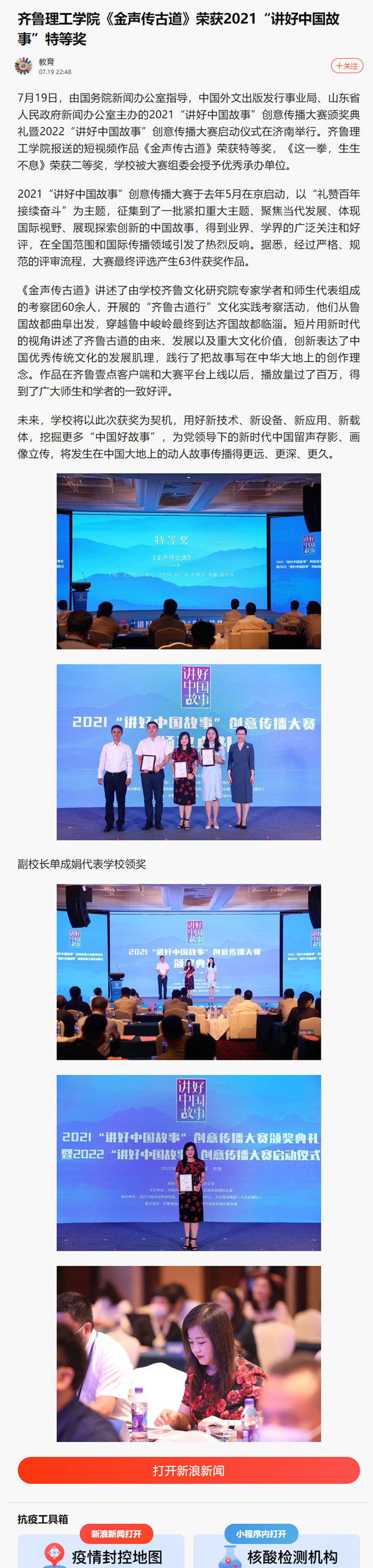新浪:MILAN米兰体育·(中国)官方网站《金声传古道》荣获2021“讲好中国故事”特等奖