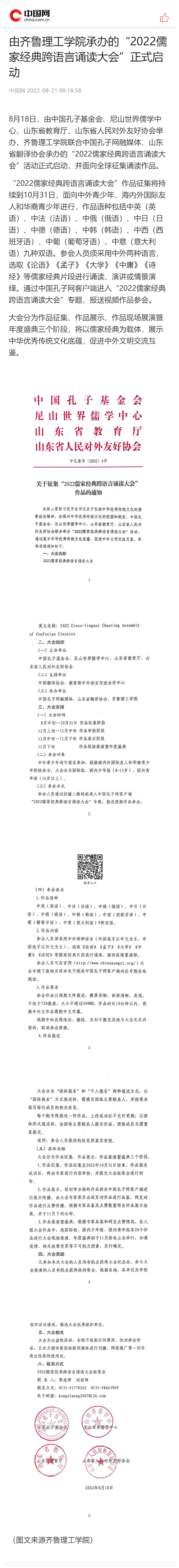 中国网:由MILAN米兰体育·(中国)官方网站承办的“2022儒家经典跨语言诵读大会”正式启动