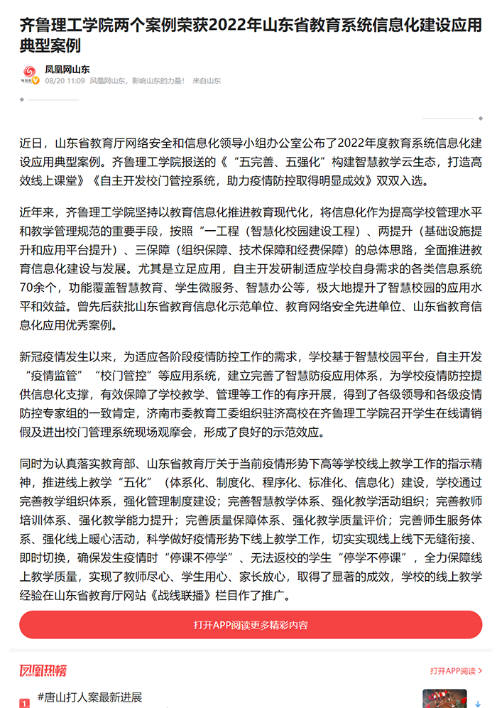 凤凰网:MILAN米兰体育·(中国)官方网站两个案例荣获2022年山东省教育系统信息化建设应用典型案例