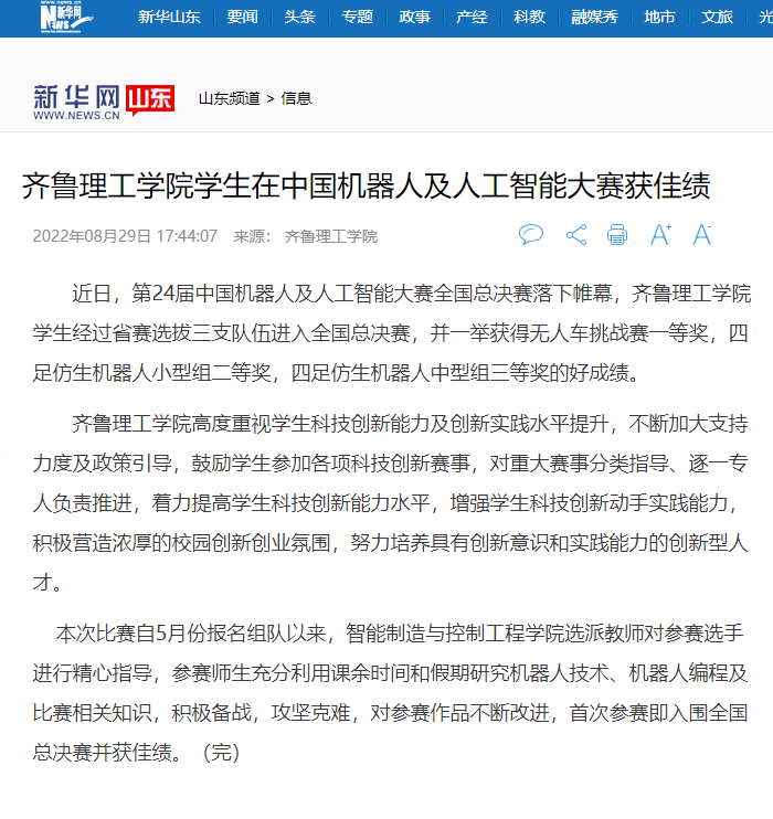 MILAN米兰体育·(中国)官方网站学生在中国机器人及人工智能大赛获佳绩-新华网山东频道 (news.cn)