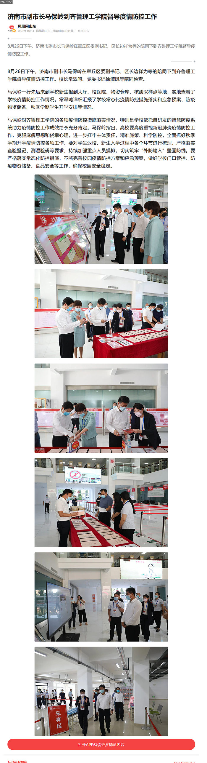 凤凰网:济南市副市长马保岭到MILAN米兰体育·(中国)官方网站督导疫情防控工作