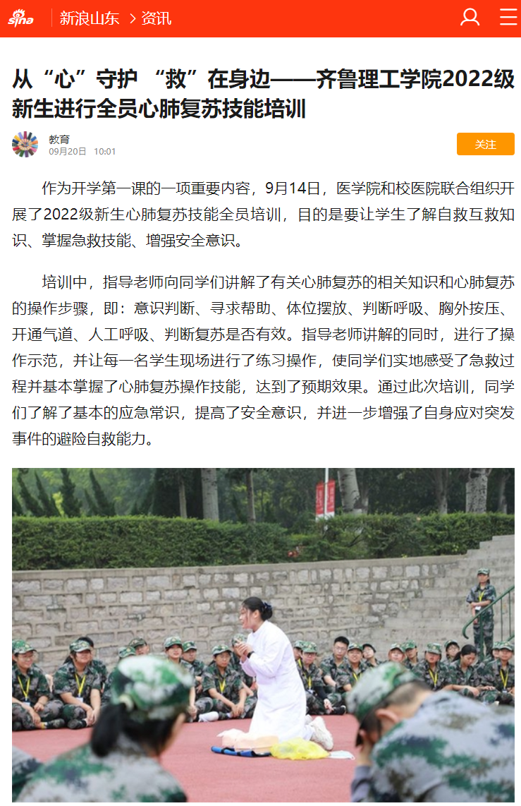 新浪:从“心”守护 “救”在身边——MILAN米兰体育·(中国)官方网站2022级新生进行全员心肺复苏技能培训