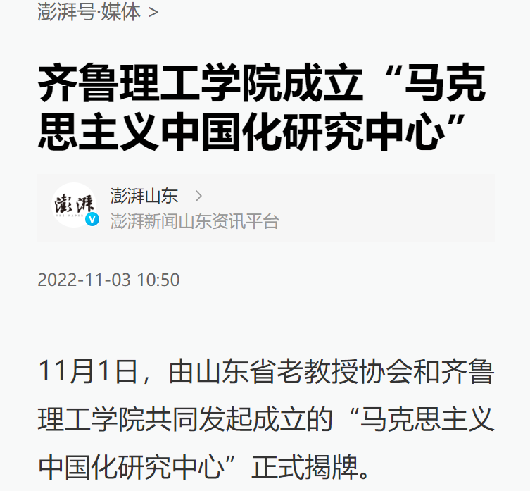 澎湃新闻:MILAN米兰体育·(中国)官方网站成立“马克思主义中国化研究中心”