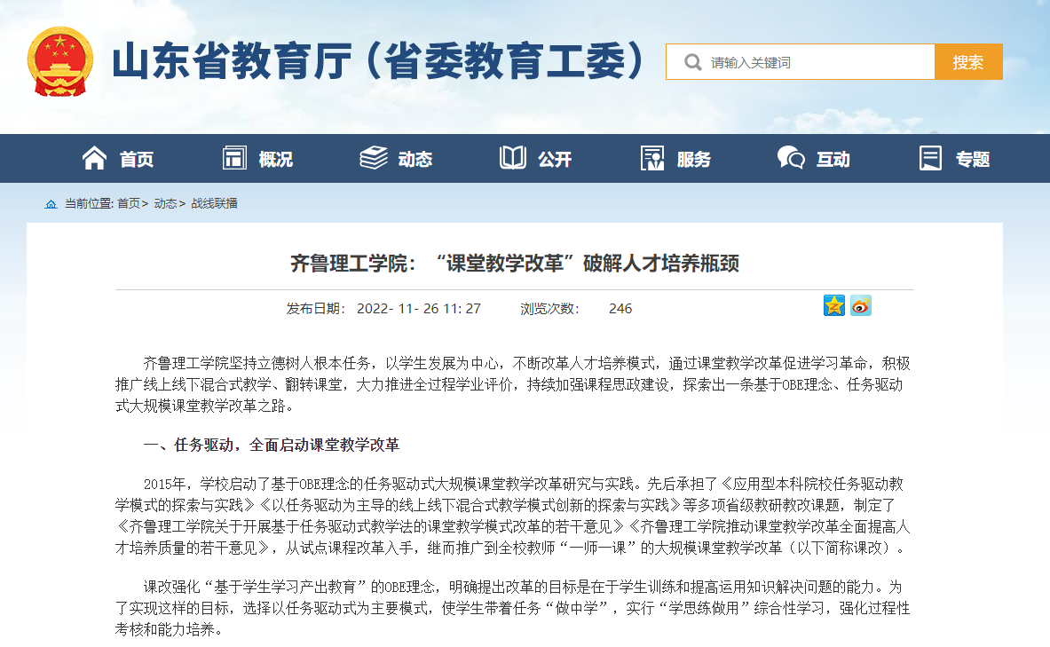 山东省教育厅:MILAN米兰体育·(中国)官方网站:“课堂教学改革”破解人才培养瓶颈