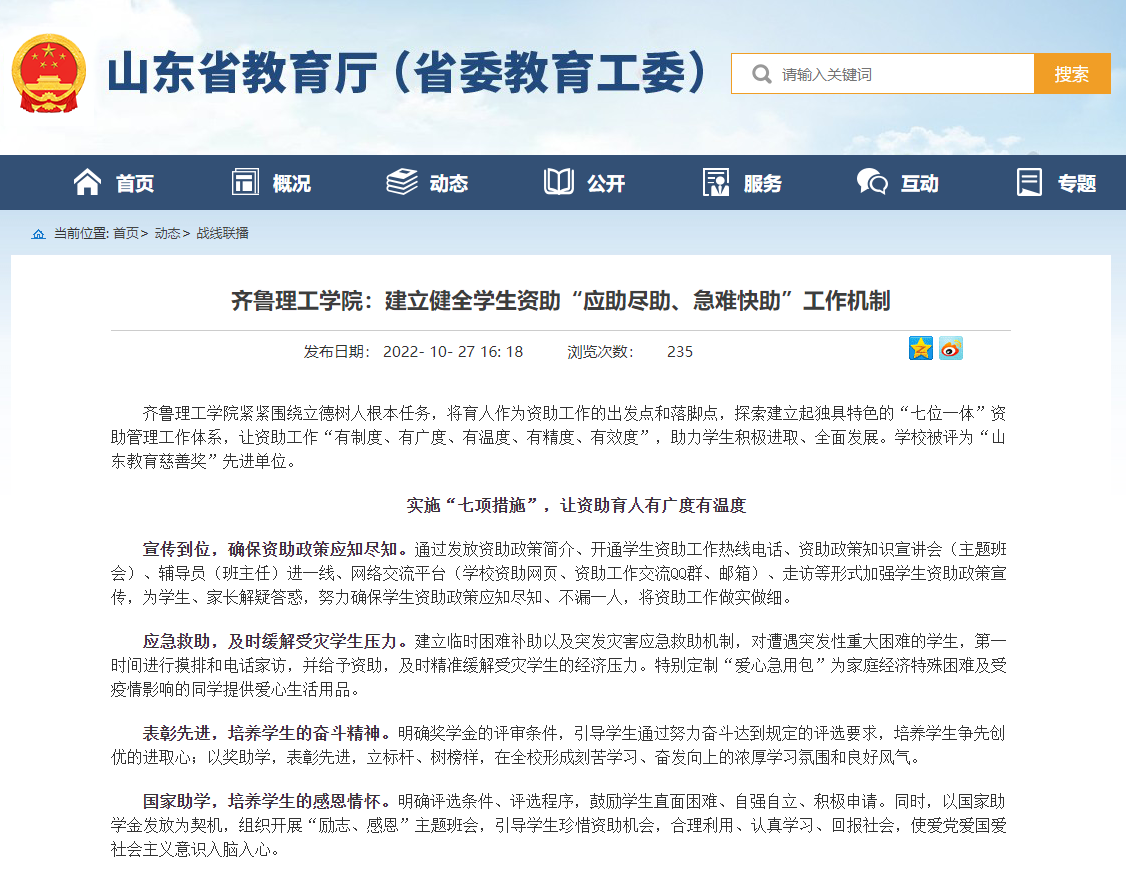 山东省教育厅:MILAN米兰体育·(中国)官方网站:建立健全学生资助“应助尽助、急难快助”工作机制