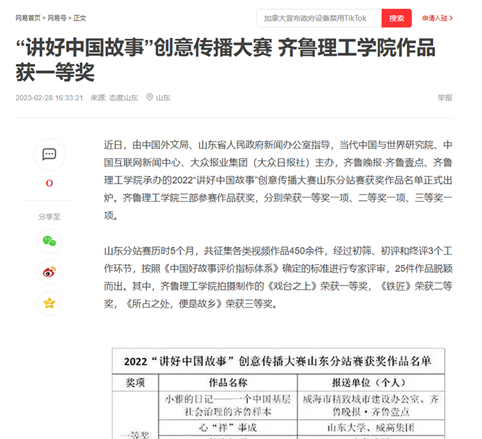 网易:“讲好中国故事”创意传播大赛 MILAN米兰体育·(中国)官方网站作品获一等奖