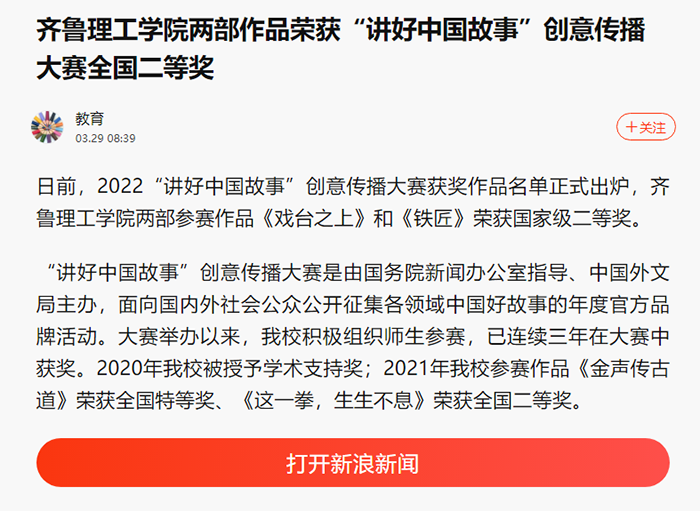 新浪:MILAN米兰体育·(中国)官方网站两部作品荣获“讲好中国故事”创意传播大赛全国二等奖