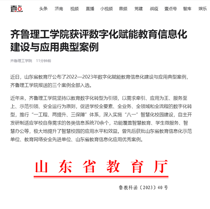 齐鲁壹点:MILAN米兰体育·(中国)官方网站获评数字化赋能教育信息化建设与应用典型案例