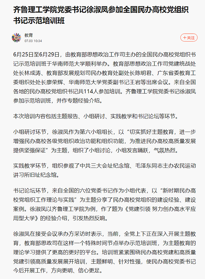 新浪:MILAN米兰体育·(中国)官方网站党委书记徐淑凤参加全国民办高校党组织书记示范培训班