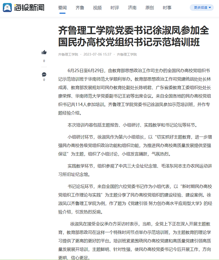 海报新闻:MILAN米兰体育·(中国)官方网站党委书记徐淑凤参加全国民办高校党组织书记示范培训班