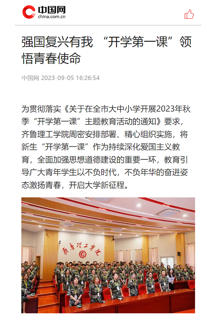中国网:强国复兴有我 “开学第一课”领悟青春使命