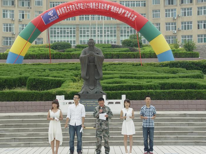 为深入学习宣传贯彻党的十八大精神,丰富校园文化生活,营造和谐进取、积极向上的文化氛围,9月4日,曲师大杏坛学院济南校区2013级新生军政训练“我的中国梦”歌咏比赛隆重举行。