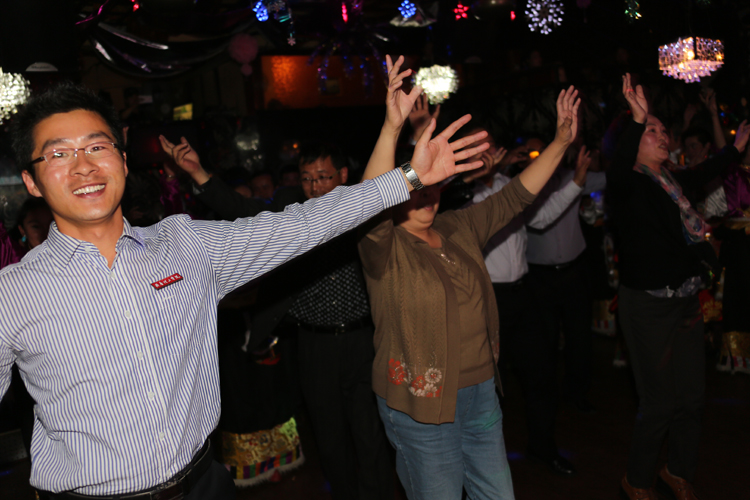 考察团领导与黄南州职业学校师生一起联欢
