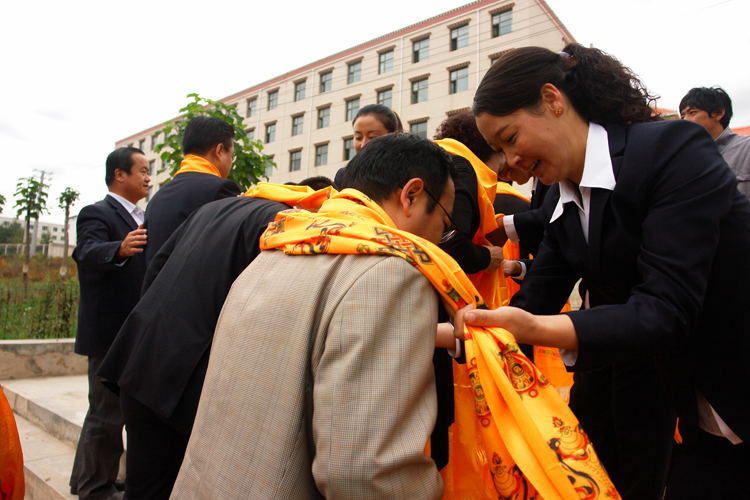 黄南州职校副校长徐海华向学院董事徐晓霞献哈达